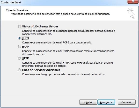 * Irá aparecer uma nova janela para escolher o Tipo de Servidor |
